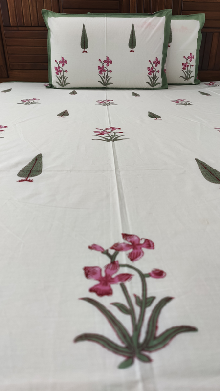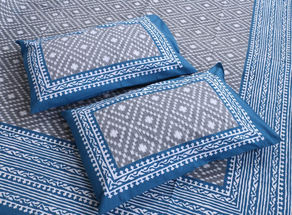 MEHER – Hand Block Printed Bedsheet with 2 Reversible Pillow Covers