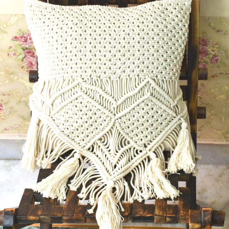 Macrame Pillow Covers Cushion Cover, Handmade Throw Pillow Cover Boho Home Decor Farmhouse Woven