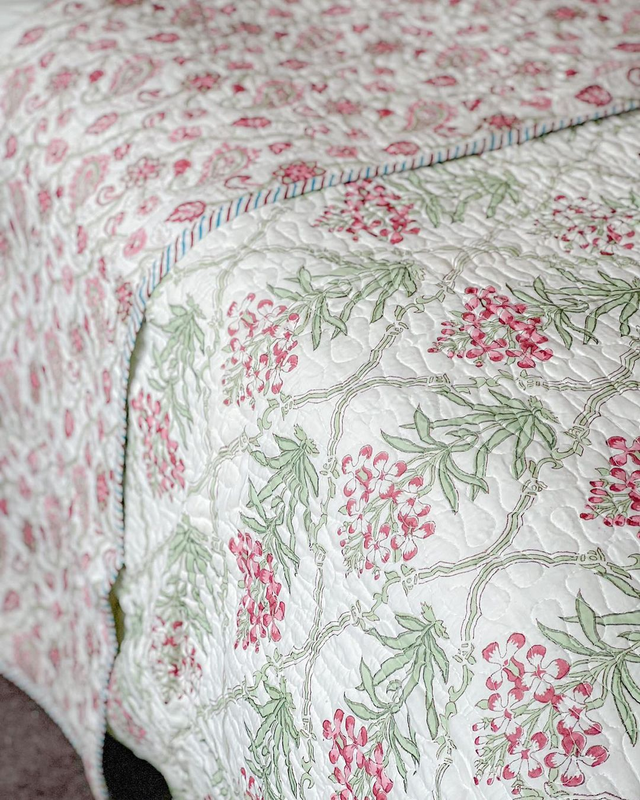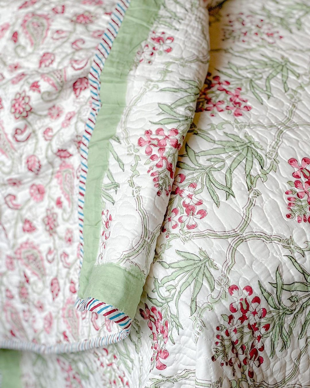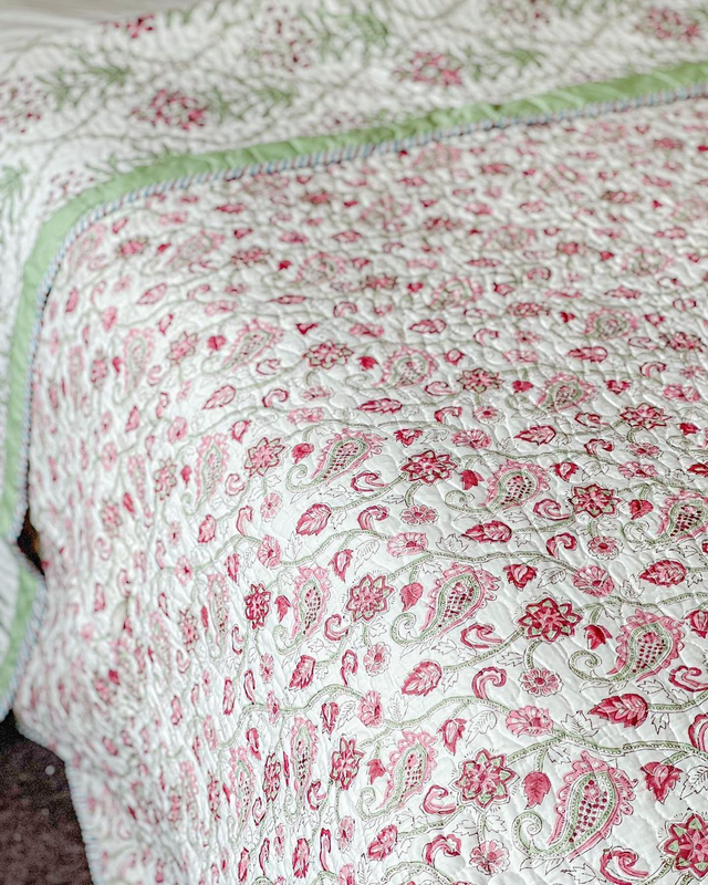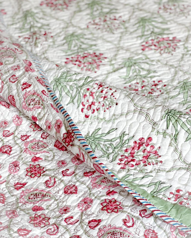 Premium Reversible Handblocked Quilted Bedcover with 2 Quilted pillow covers